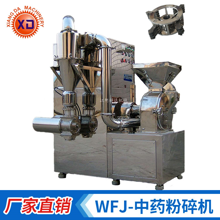 WFJ-中药粉碎机主要用于粉碎动物、植物纤维类物料,尤其适用于粉碎纤维含量大的中药材和带有一定油脂的物料。WFJ-中药粉碎机系列产品广泛应用于制药、化工、食品等行业,具有风冷、无筛网等多种特点,设备由加料斗、分级轮、粉碎刀片、齿圈、粉碎电机、出料口、集料箱、吸尘箱等部分组成,设计科学、结构紧凑,布局合理。作业时,活动刀盘与齿圈间相对高速运动,从而快速顺利地把纤维物料剪切粉碎,活动刀盘具有粗碎、中碎和微粉碎三种不同的刀具可供选择,被粉碎的物料经旋风分离获得成品,粉碎过程中物料产生的粉尘全部由布袋除尘回收,作业过程无粉尘飞扬,符合国家“GMP”标准的要求。WFJ-中药粉碎机由全不锈钢材料制作而成,轴承和粉碎箱体分级处均有水冷却装置,齿圈呈弧锯齿螺旋形,可连续出料,从而提高生产效率。 |